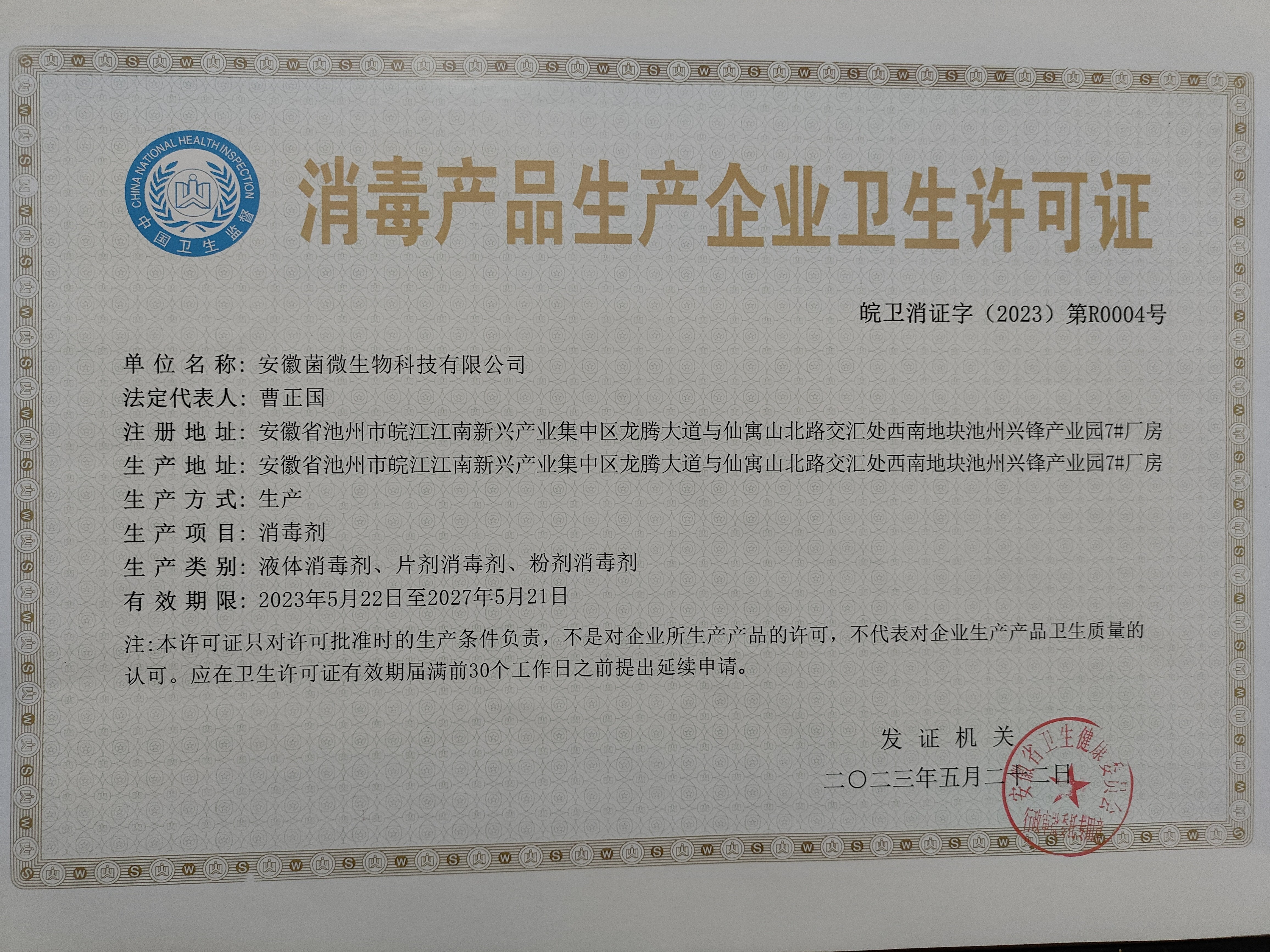 消毒產(chǎn)品生產(chǎn)企業(yè)衛(wèi)生許可證